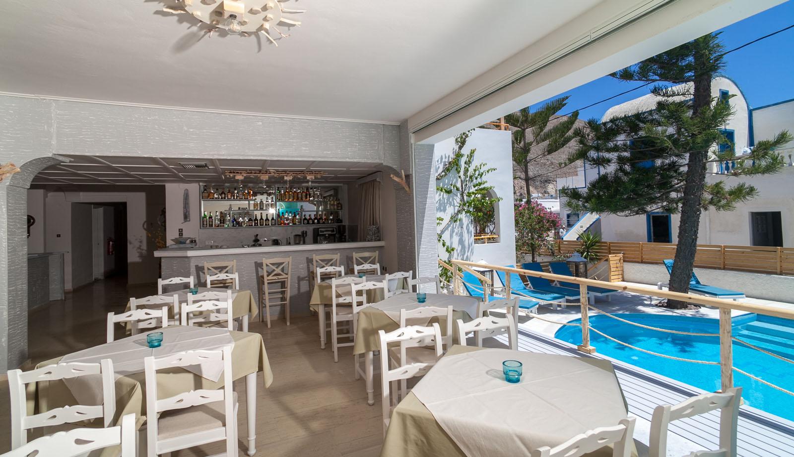 Our Lounge area is located at the entrance of Amaryllis Hotel and includes the Reception and the Breakfast room with the Bar with a pool view. We maintain the lounge area cool and shady for you to rest returning from your outdoor activities, usually having being exposed to heat and sun.